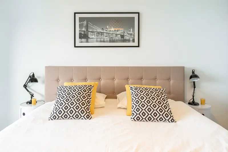 Our designers have carefully furnished each flat in a modern Scandinavian style. The flats feature a fully equipped kitchen and plenty of built-in storage.